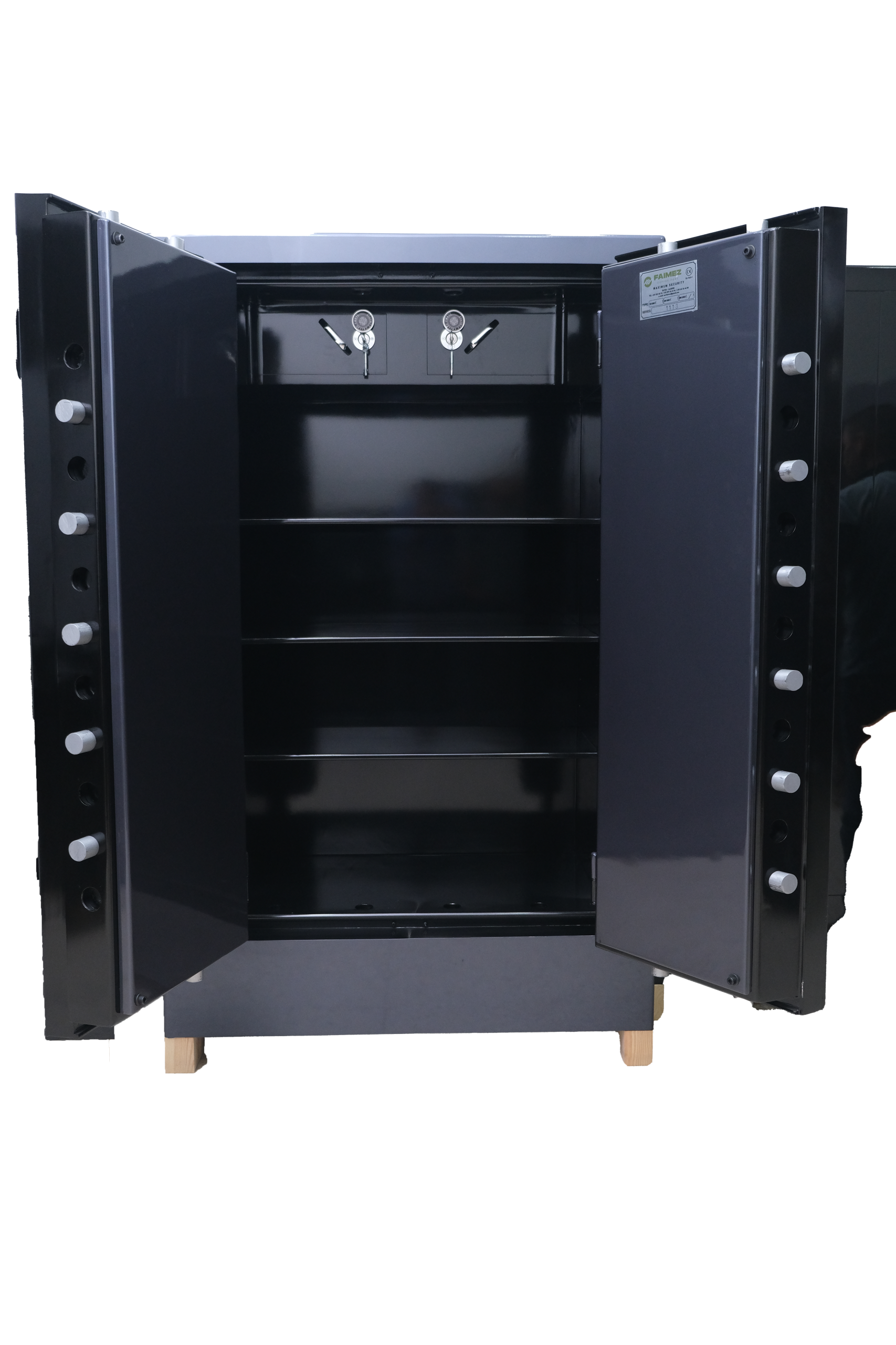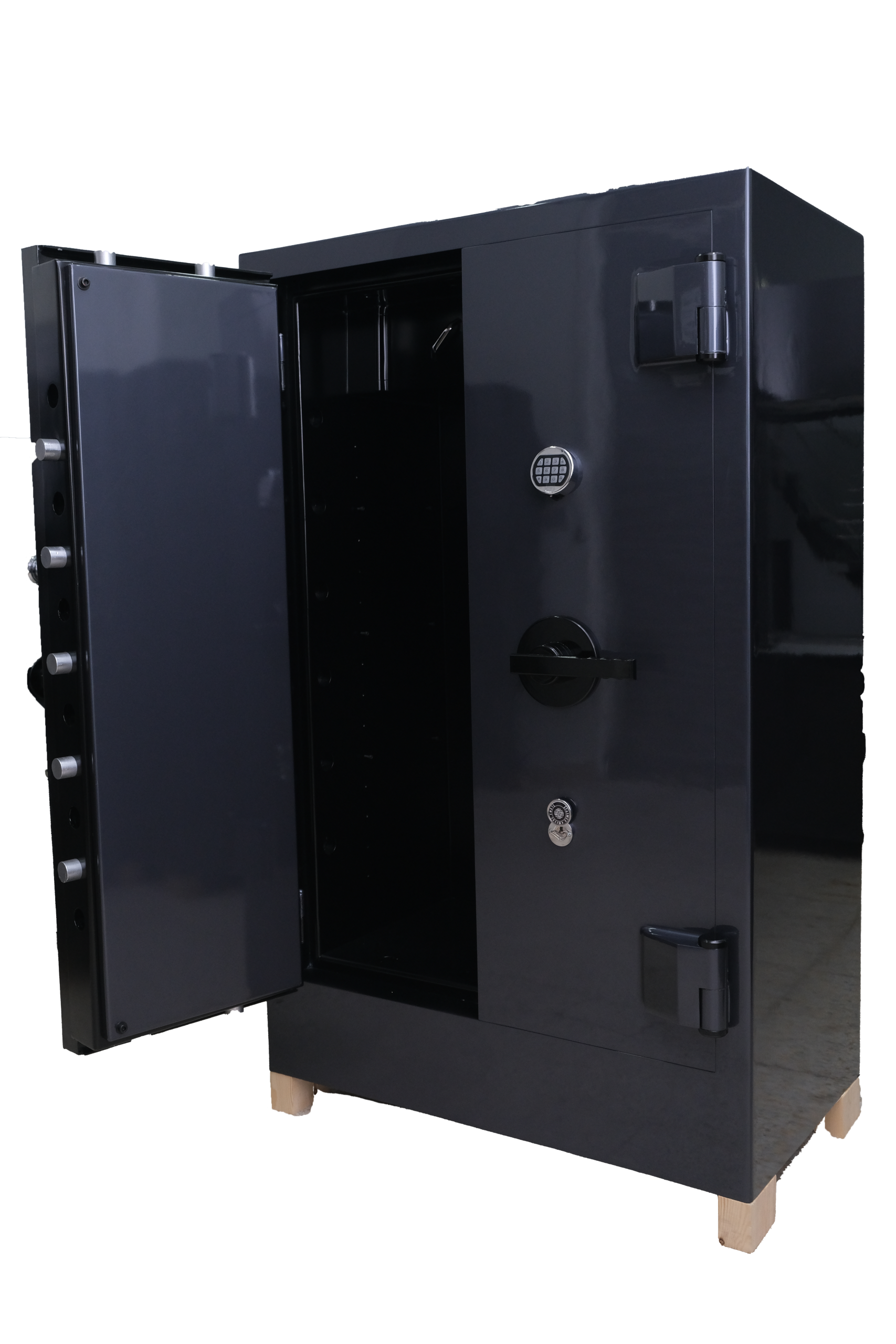 Coffres-forts en acier fabriqués en deux modèles différents de 150 cm à 200 cm de hauteur, de 160 cm à 180 cm de largeur, couvercle supérieur inférieur ou style armoire,
